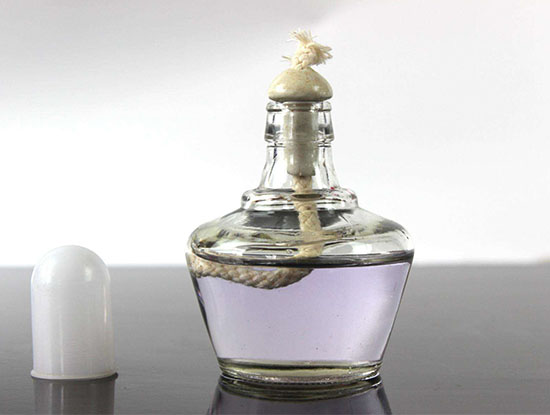 主體是由一只底座厚小肩寬的厚料玻璃瓶,用以貯存酒精燃料用,底厚肩寬不易翻倒,同時可保證在工作不慎碰翻傾斜時酒情不易外溢。底座上口有只瓷質燈芯管,是用以固定棉紗燈芯繩用。底座上口有一只燈蓋,是用以罩滅火焰和防止酒精揮發用。